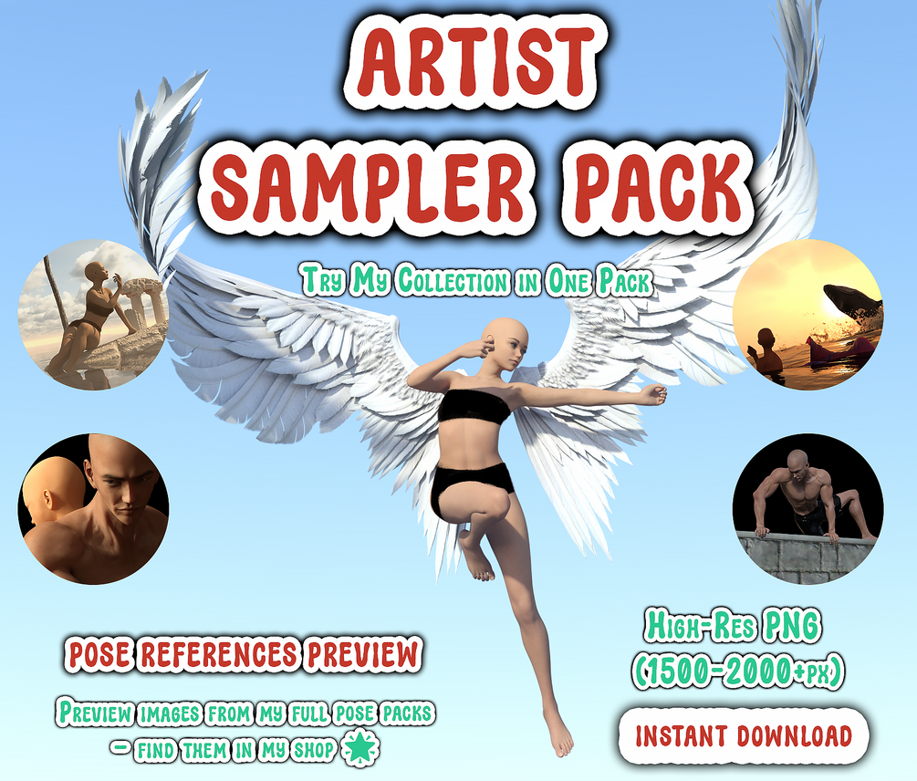 Artist Sampler Pack – Pose References Preview | Try My Collection in One Pack | Art Reference PNG for Anatomy, Lighting & Composition