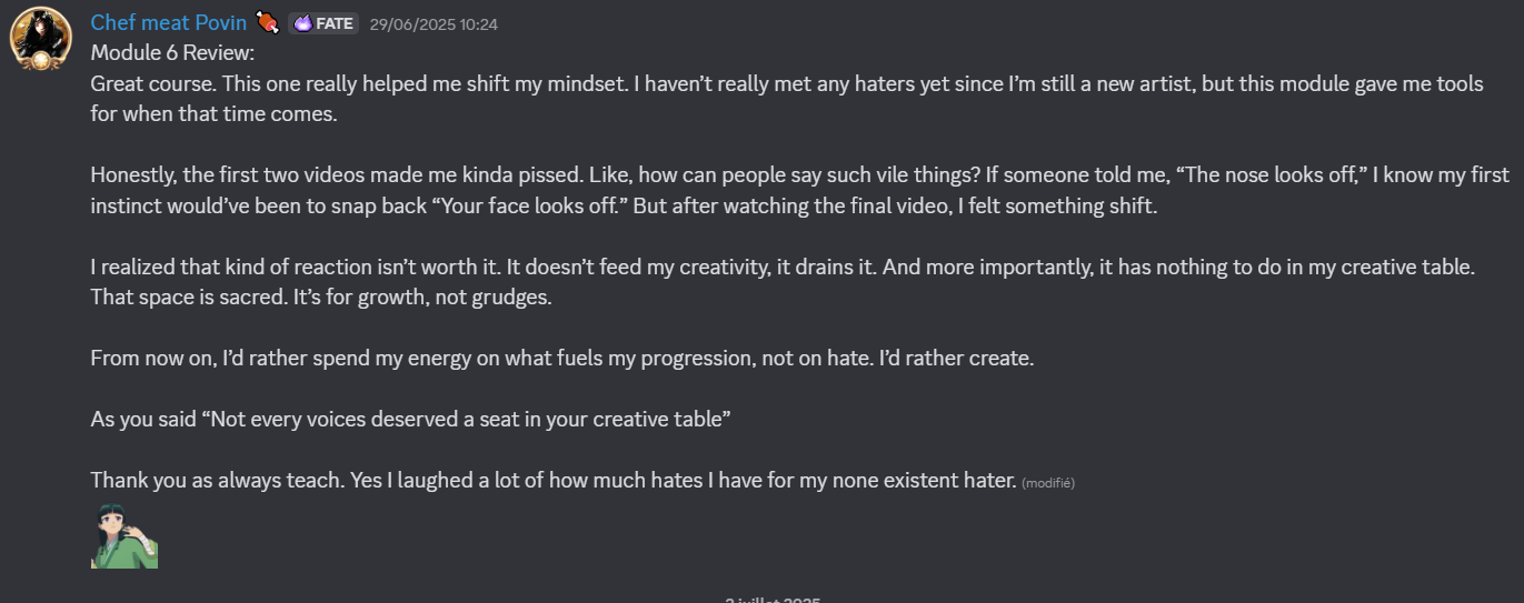 You’ll learn how to protect your confidence, take in critique without breaking, and even use it to evolve your art.
